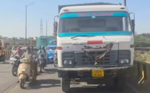 पुलिस ने हाइवा को जब्त कर लिया है और फरार चालक की तलाश शुरू कर दी है। मामले की जांच की जा रही है।
