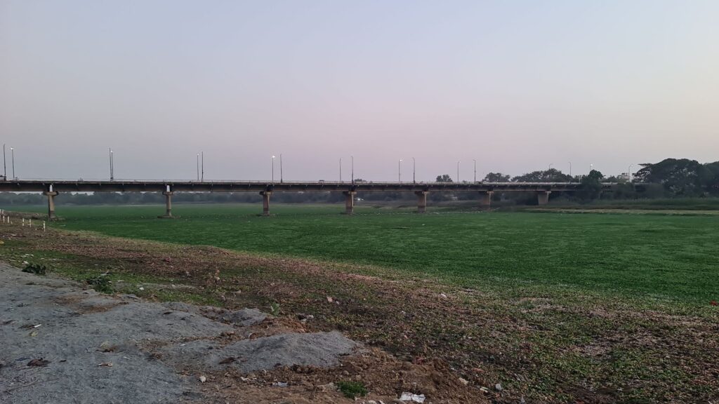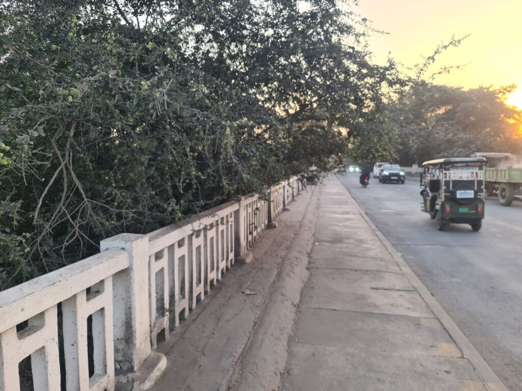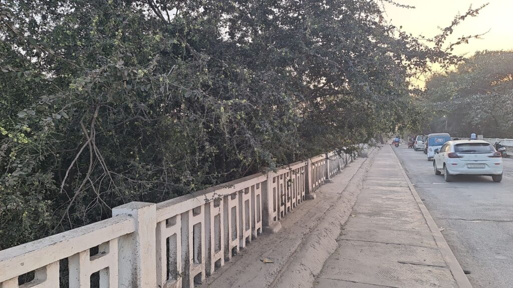 इधर पुल के फुटपाथ पर पुल के नीचे से कटीली पेड़ की टहनियां फैलकर एक बड़े हिस्से पर झुक गई हैं। इन टहनियों के कारण पैदल चलने वालों को भारी परेशानी का सामना करना पड़ रहा है। पेड़ कटीला होने के कारण लोगों को चोट लगने का खतरा बना हुआ है, खासकर रात के समय जब ये टहनियां साफ दिखाई भी नहीं देतीं।