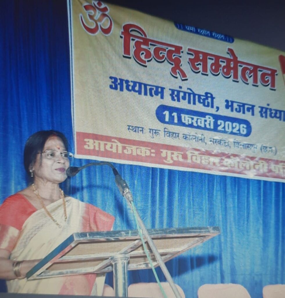गुरु विहार कॉलोनी सरकंडा में 11 तारीख बुधवार को हिंदू सम्मेलन अध्यात्म संगोष्ठी एवं भक्तिमय भजन संध्या का आयोजन किया गया । गुरु विहार परिवार के सभी सदस्यों के सहयोग से यह आयोजन संपन्न किया गया । कार्यक्रम के संयोजक पं. अनिल शर्मा जी सेवानिवृत्त डिप्टी डायरेक्टर रेशम विभाग छत्तीसगढ़,पं.बाबूलाल पंड्या जी सेवानिवृत्त सुपरीटेंडेंट गुरु घसीदास विश्वविद्यालय बिलासपुर, एवं पं. प्रमोद शर्मा जी सेवानिवृत्त मुख्य कार्यपालन अधिकारी छत्तीसगढ़ शासन के दिशा निर्देशन में हिंदू सम्मेलन का आयोजन किया गया । कार्यक्रम में मुख्य वक्ता परम पूज्य दुर्गेश जी महाराज राष्ट्रीय धर्माचार्य, आशीर्वचन मुख्य अतिथि स्वामी सेवाव्रतानन्द जी महाराज सचिव रामकृष्ण मिशन बिलासपुर, अति विशिष्ट अतिथि डॉ ररमणेश मूर्ति जी अधिष्ठाता सिम्स छत्तीसगढ़, विशिष्ट अतिथि डाॅ प्रताप पांडेय जी प्राचार्य डी एल एस कॉलेज बिलासपुर थे। डॉ प्रताप पांडेय जी ने हिंदू धर्म पर प्रकाश डालते हुए गंगा गायत्री गीता और गौ के महत्व को बताते हुए हिंदू संस्कृति के इतिहास पर प्रकाश डाला एवं युवा वह है जो जीवटता से राष्ट्र सृजन और परिवर्तन की सोच रखता है ।हमारा उद्देश्य समाज में सकारात्मक परिवर्तन लाने का होना चाहिए ।