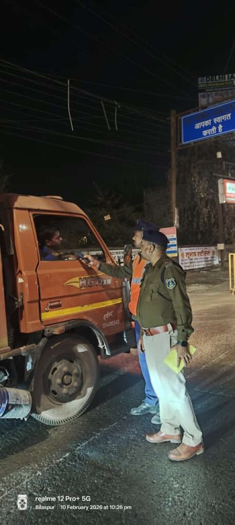 बिलासपुर। सड़क दुर्घटनाओं पर अंकुश लगाने के लिए बिलासपुर पुलिस ने यातायात नियमों की अनदेखी करने वाले वाहन चालकों के खिलाफ व्यापक अभियान चलाया है। वरिष्ठ पुलिस अधीक्षक रजनेश सिंह के निर्देश पर यातायात पुलिस द्वारा सख्त कार्रवाई की जा रही है।