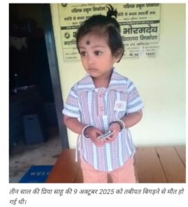 9 अक्टूबर 2025 को हुई थी बच्ची की मौत