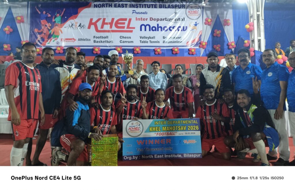 बिलासपुर। नार्थ ईस्ट इंस्टीट्यूट, बिलासपुर के तत्वावधान में आयोजित अंतर विभागीय खेल महोत्सव 2026 का दुधिया रोशनी में भव्य आयोजन संपन्न हुआ। इस खेल महोत्सव में रेलवे के विभिन्न विभागों के कर्मचारियों ने उत्साहपूर्वक भाग लिया। महिला कर्मचारियों की उल्लेखनीय उपस्थिति ने आयोजन की गरिमा को और बढ़ाया। रोमांचक मुकाबलों को देखने के लिए बड़ी संख्या में दर्शक भी उपस्थित रहे।