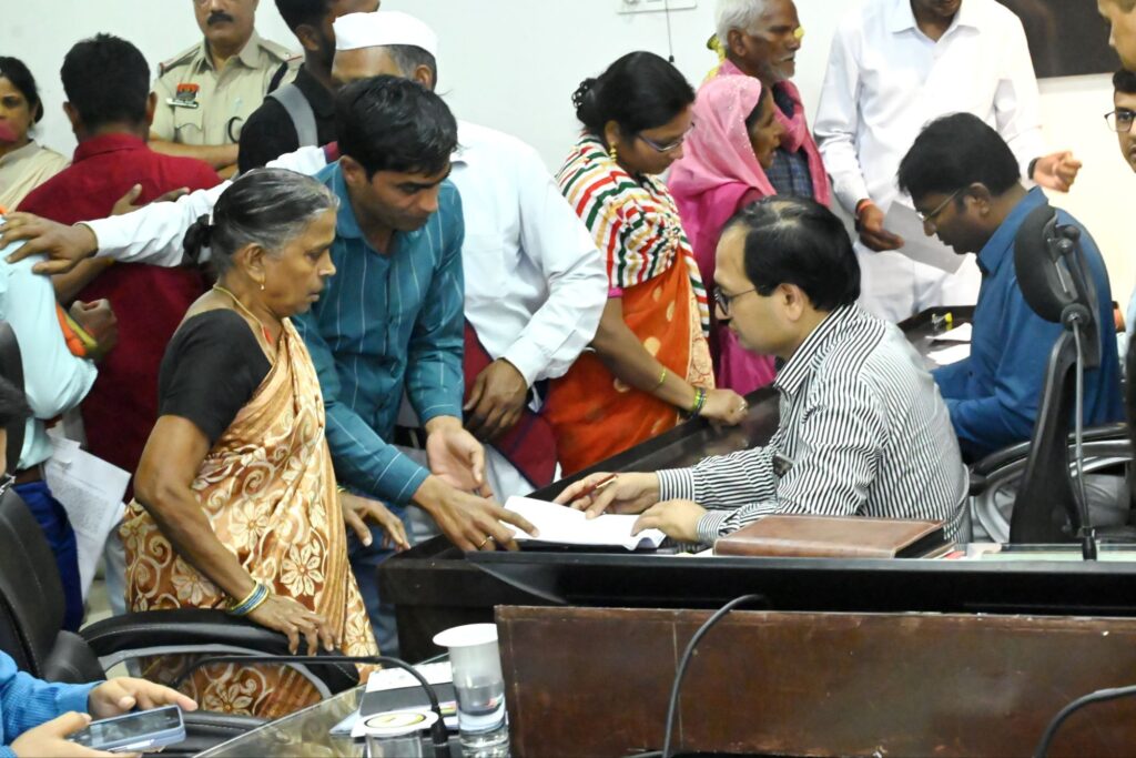 बिलासपुर, 17 फरवरी 2026/कलेक्टर श्री संजय अग्रवाल ने साप्ताहिक जनदर्शन में आज दूर-दराज से पहुंचे ग्रामीणों की फरियाद सुनी। उन्होंने एक-एक कर प्रत्येक व्यक्ति से मुलाकात कर उनका आवेदन लिया और आवश्यक कार्रवाई के लिए अधिकारियों को निर्देशित किया। लोगों ने जनदर्शन में व्यक्तिगत एवं सामुदायिक हित से जुड़े विषयों को लेकर जिला प्रशासन का ध्यान आकृष्ट करते हुए आवेदन दिया। नगर निगम कमिश्नर श्री प्रकाश कुमार सर्वे और सीईओ जिला पंचायत श्री संदीप अग्रवाल ने लोगों की समस्याओं को सुना। लोगों ने कलेक्टर से मिलकर व्यक्तिगत एवं सामुदायिक समस्याओं से संबंधित आवेदन दिए।