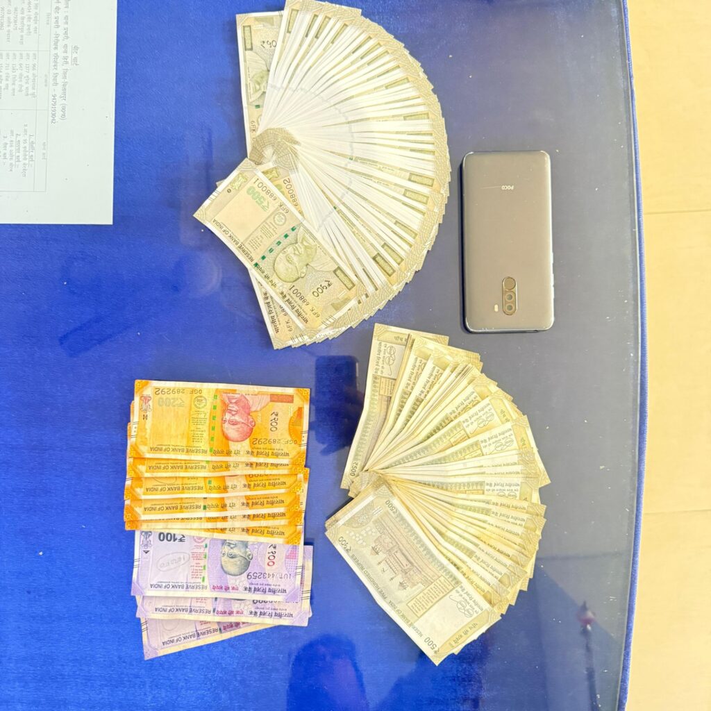 आरोपी के कब्जे से 75 हजार रुपये नगद और एक मोबाइल फोन जब्त किया गया है। पुलिस ने आरोपी को गिरफ्तार कर न्यायालय में पेश किया, जहां से उसे न्यायिक रिमांड पर भेज दिया गया। मामले में आगे की जांच जारी है।