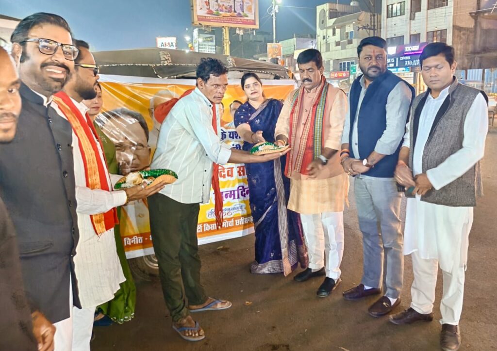 रायपुर। छत्तीसगढ़ के मुख्यमंत्री विष्णुदेव साय के जन्मदिन पर भारतीय जनता पार्टी किसान मोर्चा द्वारा सेवा भाव के साथ भोजन वितरण कार्यक्रम आयोजित कर जरूरतमंद लोगों को प्रेमपूर्वक भोजन वितरित किया गया। कार्यक्रम में सभी ने मुख्यमंत्री श्री साय के स्वस्थ, दीर्घायु एवं सफल नेतृत्व की कामना की।