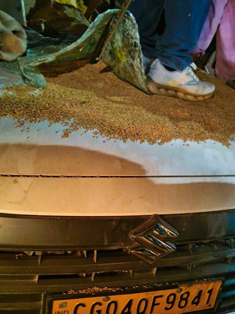 रायपुर। राजधानी रायपुर में रविवार रात करीब 8.30 बजे पुरानी विधानसभा के पास नरदहा क्षेत्र में एक भीषण सड़क हादसा हो गया। धान से लदा ट्रक अनियंत्रित होकर कार के ऊपर पलट गया, जिससे कार सवार पति-पत्नी और चालक की दर्दनाक मौत हो गई।
