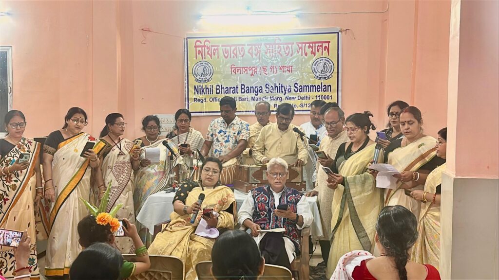 बिलासपुर। निखिल भारत बंग साहित्य सम्मेलन की बिलासपुर शाखा द्वारा हेमू नगर स्थित रामकृष्ण मंदिर के सभा भवन में अंतरराष्ट्रीय मातृभाषा दिवस हर्षोल्लास के साथ मनाया गया। कार्यक्रम में संगीत, नृत्य, कविता पाठ, गीति आलेख्य एवं कौतुक अभिनय के माध्यम से मातृभाषा के महत्व को रेखांकित किया गया।