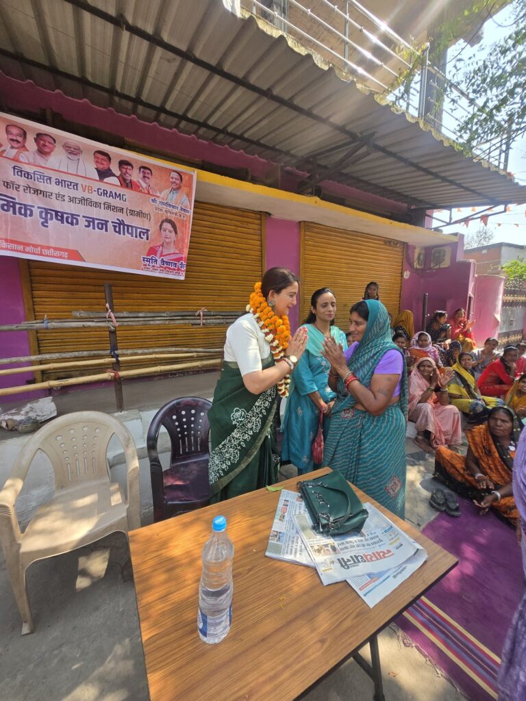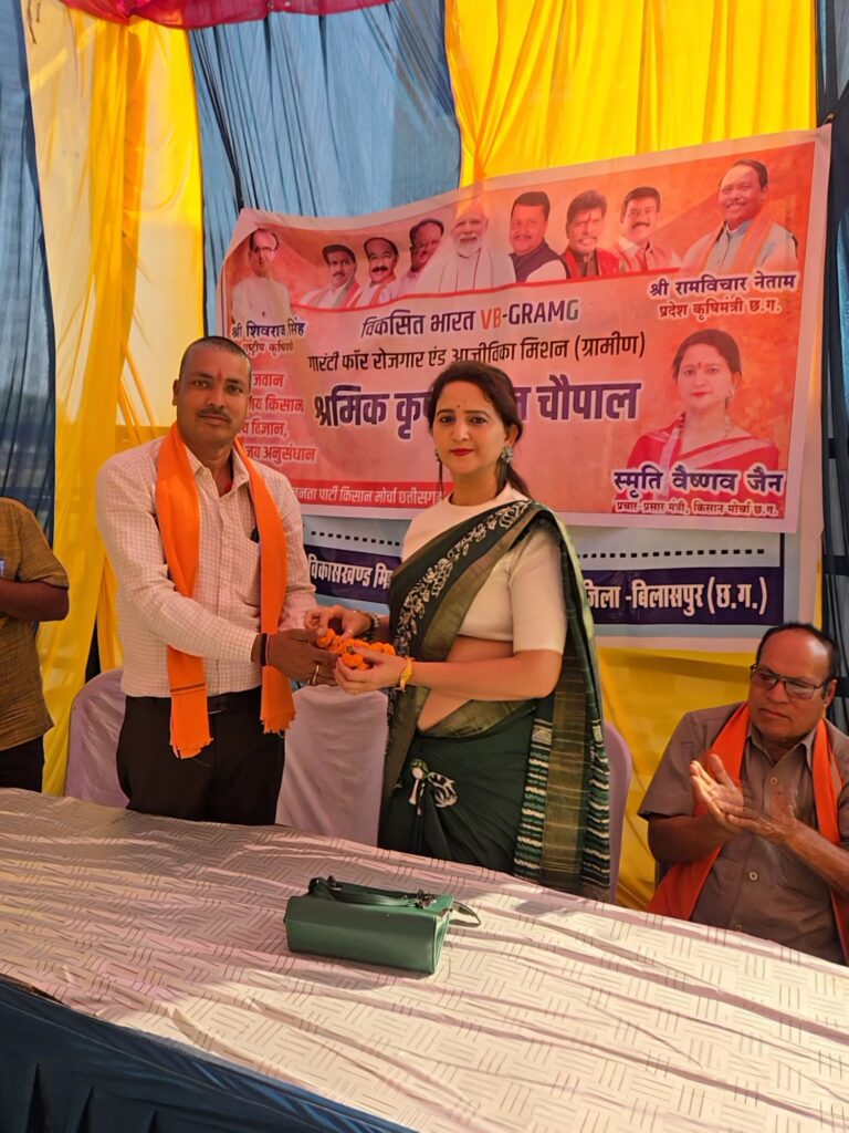 केंद्र सरकार की जनकल्याणकारी योजनाओं को लेकर ग्रामीण अंचलों में फैलाई जा रही भ्रांतियों के बीच भाजपा किसान मोर्चा ने जमीनी स्तर पर संवाद अभियान तेज कर दिया है। प्रदेश कृषि मंत्री राम विचार नेताम के निर्देश पर किसान मोर्चा के अध्यक्ष अलोक ठाकुर के मार्गदर्शन में प्रदेश प्रचार- प्रसार मंत्री स्मृति वैष्णव जैन ने ग्राम सेमरताल, महमंद व बेलतरा विधानसभा के और भी गाँव- गाँव में कृषक श्रमिक चौपाल कार्यक्रम आयोजित कर ग्रामीणों और श्रमिकों को “विकसित भारत रोजगार एवं आजीविका गारंटी मिशन ग्रामीण” ( VB- G- RAM-G) की विस्तृत जानकारी दी।