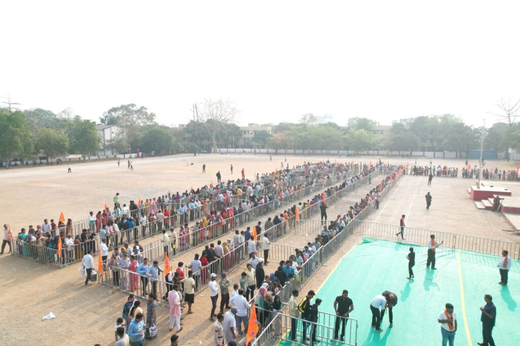 रविवार को पुलिस मैदान आस्था के रंग में रंगा नजर आया। रात से ही रामभक्तों की भीड़ जुटने लगी थी।सुबह होते ही काउंटर के सामने लंबी कतार लग गई। जय श्री राम के नारों के बीच पंजीयन शुरू हुआ। श्रद्धालु बस यही प्रार्थना कर रहे थे कि उनका नाम सूची में शामिल हो जाए।