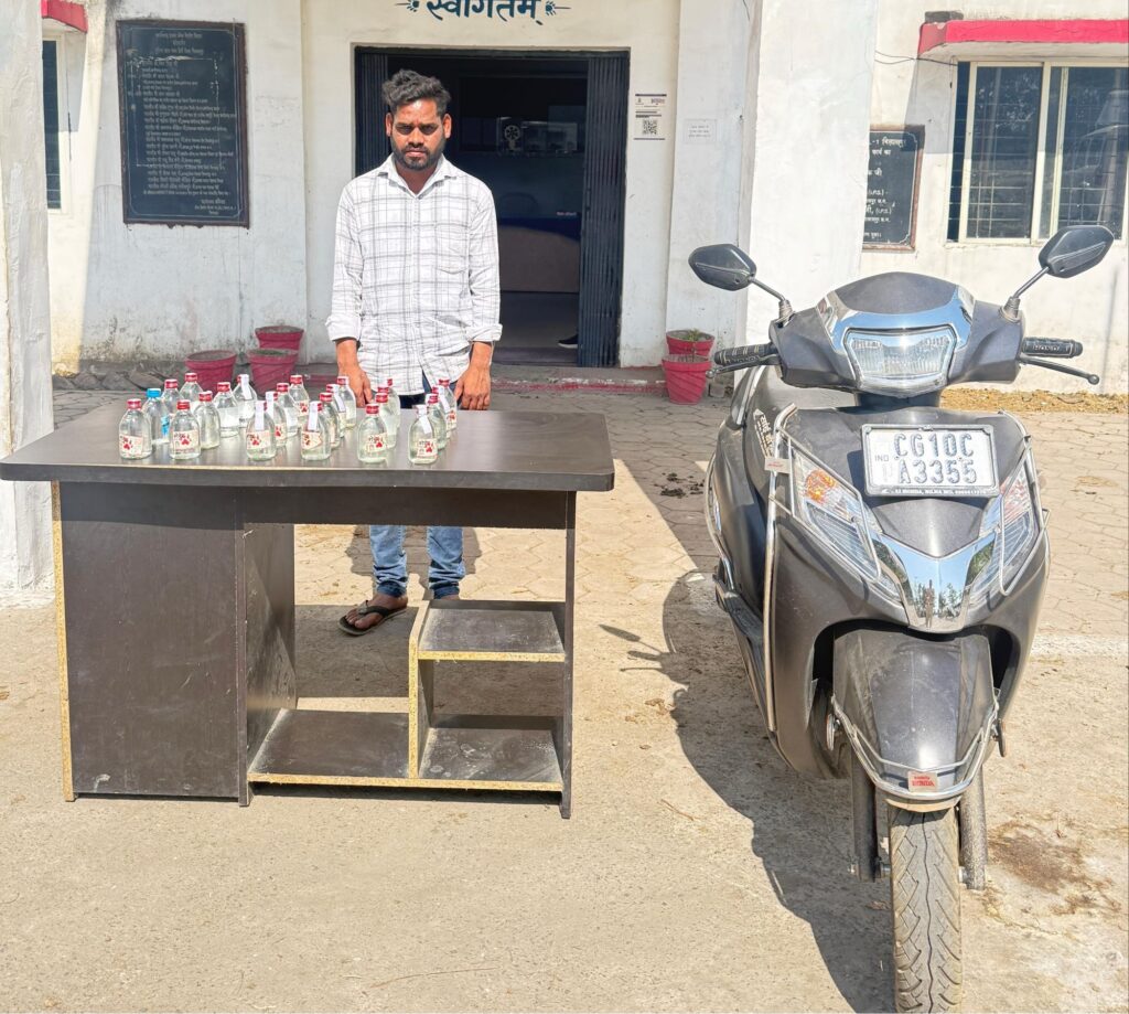वहीं हिर्री थाना पुलिस ने ग्राम झलफा के पास रेड कर घुम-घुमकर शराब बेच रहे आरोपी दीपक डहरिया को गिरफ्तार किया। उसके कब्जे से 24 पाव देशी प्लेन शराब (कुल 4.320 लीटर, कीमत 1920 रुपये), 200 रुपये बिक्री रकम तथा एक होंडा एक्टिवा (क्रमांक CG 10 CA 3355) जब्त की गई। आरोपी के खिलाफ आबकारी एक्ट की धारा 34(1) (क) (ख) के तहत मामला दर्ज किया गया है।