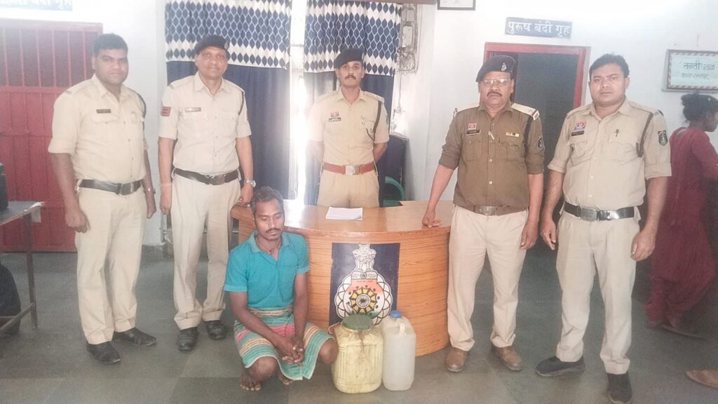 ग्राम रिंगवार में आरोपी शिवशंकर धनवार (30 वर्ष) के घर से 25 लीटर कच्ची महुआ शराब बरामद की गई।