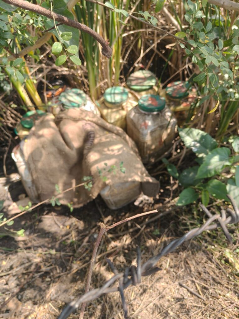 इसी दौरान 9 मार्च को थाना कोनी पुलिस को विश्वसनीय मुखबिर से सूचना मिली कि घुटकु स्टेशन पारा के आगे रेलवे लाइन किनारे घनी झाड़ियों में बड़ी मात्रा में महुआ लाहन छिपाकर रखा गया है, जिसका उपयोग अवैध शराब बनाने के लिए किया जाना था। सूचना पर पुलिस टीम मौके पर पहुंची और घुटकु स्टेशन पारा से लगभग डेढ़ किलोमीटर दूर झाड़ियों में छिपाकर रखे 300 प्लास्टिक डिब्बों में भरे महुआ लाहन को बरामद किया।