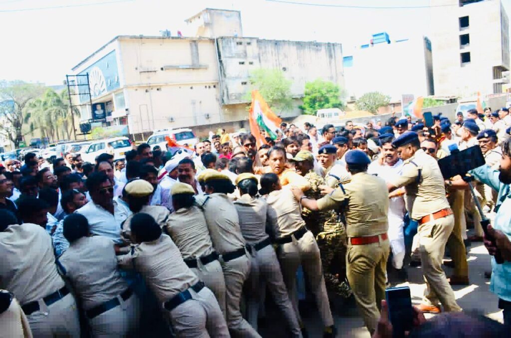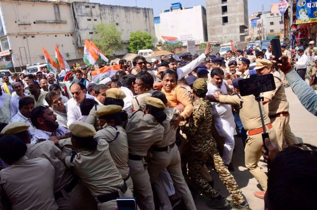 प्रदर्शन के दौरान कांग्रेस कार्यकर्ताओं ने भाजपा सरकार के खिलाफ नारेबाजी करते हुए आगे बढ़ने की कोशिश की, लेकिन पुलिस ने उन्हें रोक दिया। इस दौरान कुछ कार्यकर्ताओं ने बैरिकेडिंग पार करने का प्रयास किया, जिससे पुलिस और प्रदर्शनकारियों के बीच धक्का-मुक्की की स्थिति बन गई। हालांकि पुलिस बल ने स्थिति को नियंत्रित करते हुए किसी को आगे बढ़ने नहीं दिया।