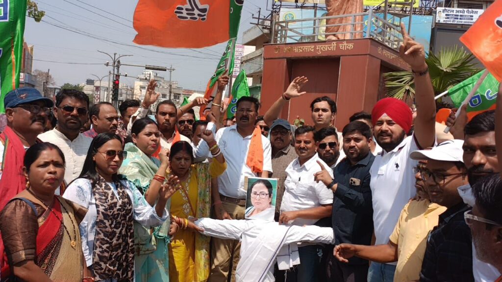 बिलासपुर भारतीय जनता पार्टी अनुसूचित जनजाति मोर्चा के द्वारा दिनांक 13 मार्च 2026 को दोपहर 12:00 पुराना बस स्टैंड डॉक्टर श्यामा प्रसाद मुखर्जी चौक में पश्चिम बंगाल की मुख्यमंत्री ममता बनर्जी का पुतला दहन किया गया अनुसूचित जाति मोर्चा के जिलाध्यक्ष श्री श्याम सिंह ध्रुव ने बताया कि देश की आदिवासी समाज के महिला महामहिम राष्ट्रपति श्रीमती द्रौपति मुर्मू जी के बंगाल दौरे के दौरान उनका अपमान किया गया था इस अपमान के विरोध में ममता बनर्जी का पुतला दहन किया गया इस अवसर पर भारतीय जनता पार्टी के अनुसूचित जाति मोर्चा के ग्रामीण जिलाध्यक्ष लखन लाल पैकरा, जिला महामंत्री सचिन कायरवार, अमित टोप्पो प्रकाश कायरवार भारती परते युवा मोर्चा के जिलाध्यक्ष वैभव गुप्ता, धीरेंद्र केशरवानी जुगल अग्रवाल पार्षद गणेश रजक,सनी केसरी, शैलेश मिश्रा रीना गोस्वामी संध्या चौधरी पायल खत्री सुनीता राज रिंकू मित्रा मनीष गुप्त शैलेश मिश्रा राघवेन्द्र राव परेश श्रीवास्तव योगेश सिंह ठाकुर दर्मेन्द्र आयुष बलराम एवं भारतीय जनता पार्टी के सभी पदाधिकारी, कार्यकर्ता बड़ी संख्या में उपस्थित थे