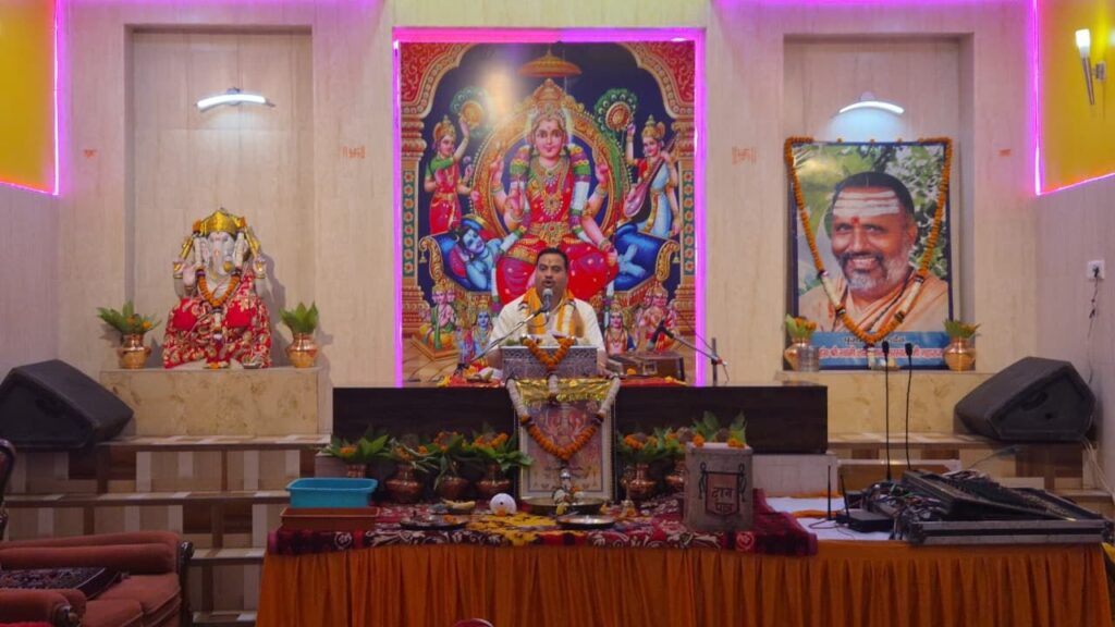 नगर एवं प्रदेश के अद्वितीय आध्यात्मिक केंद्र श्री पीताम्बरा पीठ त्रिदेव मंदिर, सुभाष चौक, सरकण्डा में चैत्र वासंतिक नवरात्र के पावन अवसर पर श्रीमद् देवी भागवत महापुराण का नौ दिवसीय संगीतमय आयोजन अत्यंत श्रद्धा एवं उल्लास के साथ किया जा रहा है। यह आयोजन गुरुवार, 19 मार्च 2026 से प्रारंभ होकर शुक्रवार, 27 मार्च 2026 तक अनवरत चलेगा।