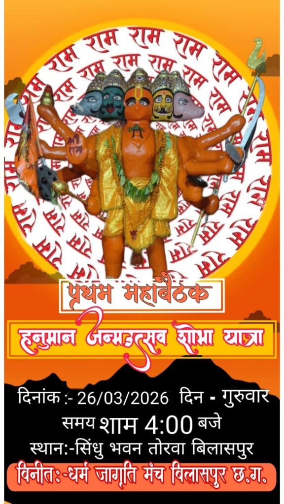 बिलासपुर। धर्म जागृति मंच द्वारा आगामी हनुमान जन्मोत्सव को लेकर तैयारियों ने अब जोर पकड़ लिया है। इसी कड़ी में सिंधु भवन, तोरवा बिलासपुर में प्रथम बैठक आयोजित की गई, जिसमें शहर के विभिन्न सामाजिक, धार्मिक एवं व्यापारी वर्ग के प्रतिनिधियों की उल्लेखनीय उपस्थिति रही।