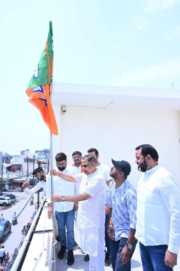 बिलासपुर। भारतीय जनता पार्टी का स्थापना दिवस आज भाजपा कार्यालय में धूमधाम के साथ मनाया गया। प्रारंभ में कार्यक्रम के मुख्य अतिथि नगर के लोकप्रिय विधायक अमर अग्रवाल ने भाजपा जिला कार्यालय में झंडारोहण किया। कार्यकर्ताओं ने जनघोश के नारे लगाये।