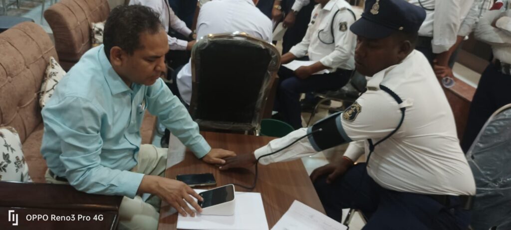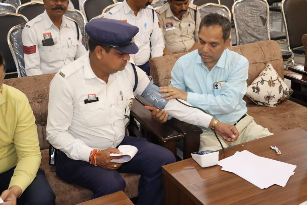 वरिष्ठ पुलिस अधीक्षक Rajnesh Singh के निर्देशन एवं अतिरिक्त पुलिस अधीक्षक (यातायात) Ramgopal Kariyare के पर्यवेक्षण में आयोजित इस शिविर का उद्देश्य ड्यूटी में लगातार तैनात रहने वाले जवानों के शारीरिक एवं मानसिक स्वास्थ्य की जांच एवं देखभाल करना रहा। ज्ञात हो कि यातायात पुलिस के जवान धूल, धूप, बारिश एवं प्रदूषण जैसी विषम परिस्थितियों में 24 घंटे अपनी सेवाएं देते हैं, जिससे उनके स्वास्थ्य पर प्रतिकूल प्रभाव पड़ता है।