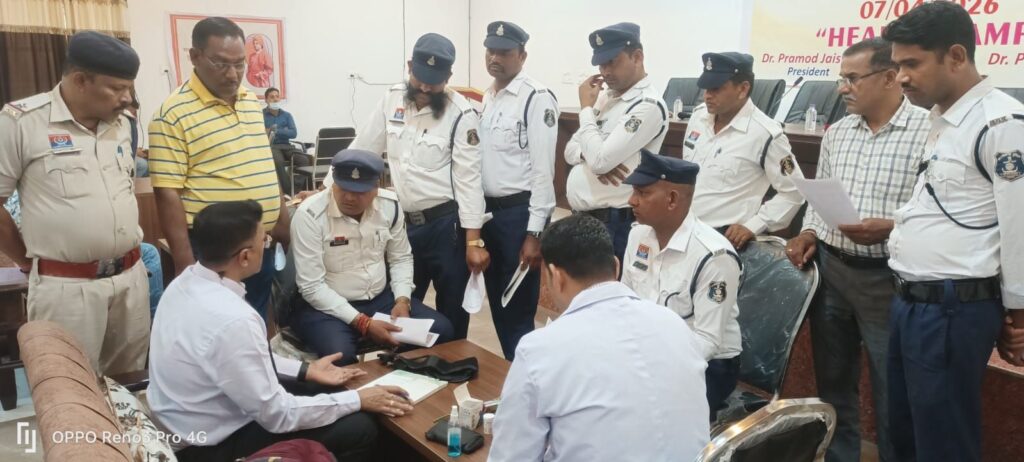 बिलासपुर। विश्व स्वास्थ्य दिवस के अवसर पर बिलासपुर पुलिस की यातायात शाखा द्वारा चेतना भवन, पुलिस लाइन बिलासपुर में मंगलवार सुबह एक विशाल नि:शुल्क स्वास्थ्य एवं चिकित्सा शिविर का आयोजन किया गया। शिविर प्रातः 6 बजे प्रारंभ हुआ, जिसमें 300 से अधिक पुलिस अधिकारी एवं कर्मचारियों ने अपने स्वास्थ्य का परीक्षण कराया।