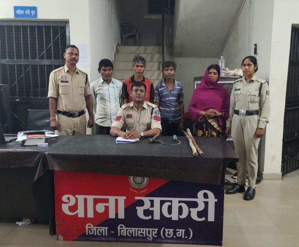 मामले में पुलिस ने अर्जुन कुमार बघेल (42), लक्ष्मण बघेल (48), दिलीप बघेल (48), सुमित्रा बघेल (40) सहित एक विधि से संघर्षरत बालक को गिरफ्तार किया है। सभी आरोपी पेण्डारी क्षेत्र के निवासी हैं।