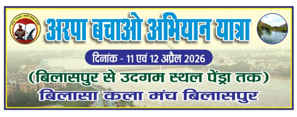 बिलासपुर,10 अप्रैल,2026/बिलासा कला मंच द्वारा पिछले 20 वर्षों से ‘अरपा बचाओ अभियान’ के माध्यम से जल संरक्षण का अत्यंत महत्वपूर्ण कार्य किया जा रहा है। अमरपुर पेंड्रा (उदगम) से लेकर शिवनाथ नदी (संगम) मंगला पासीद तक की यह यात्रा अरपा और उसकी 40 सहायक नदियों के अस्तित्व को बचाने के लिए एक बड़ा कदम है।