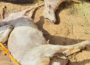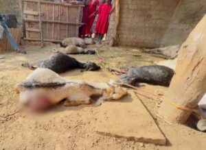 इधर ग्रामीणों का कहना है कि पिछले कुछ महीनो में गायों की भी मौत इसी तरह हुई थी, जिसमें गायों के गले में पंजे, नाखून के गहरे जख्म मिले थे। संभव है कि आसपास कोई लकड़बग्घा है, जो इस तरह से गायों और बकरियों पर हमला कर रहा है । प्रेमलाल बिरको रोज की तरह अपने बकरे बकरियों को घर के आंगन में बांध कर सो गए थे। सुबह उठा तो देखा कि आंगन में सभी 17 बकरा बकरियां मृत पड़े हैं। मामले की सूचना पुलिस को दी गई है जो सही कारणों का पता लग रही है।