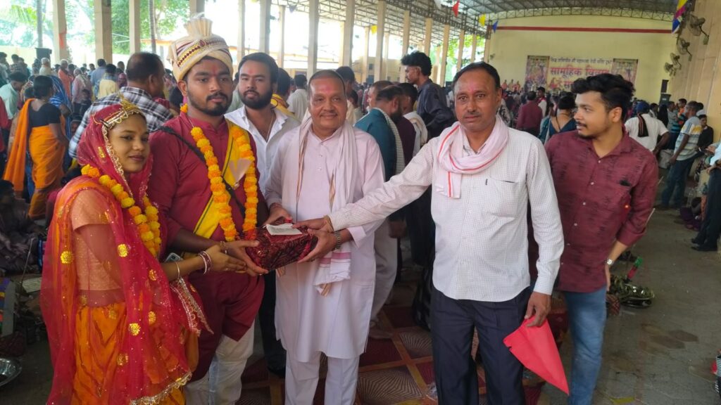 मंदिर ट्रस्ट के सभी ट्रस्टीगण कार्यक्रम में उपस्थित रहे तथा वैदिक उच्चारण एवं विधि-विधान के साथ विवाह संस्कार संपन्न कराया गया।