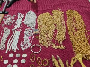 बिलासपुर। सराफा दुकान में नकली चांदी के बदले असली चांदी के जेवर खरीदने आए युवक को पुलिस ने गिरफ्तार कर लिया है। कोतवाली टीआई देवेश सिंह राठौर ने बताया, 21 अप्रैल को सदरबाजार स्थित राकेश ज्वेलर्स में एक युवक आया और पुरानी चांदी के जेवर के बदले नए चांदी के जेवर खरीदने की बात कही। मैनेजर हितेश सोनी उससे चांदी के जेवर लेकर असली चांदी के जेवर दिखाने लगा। इसी बीच उन्होंने उसके चांदी के जेवर की जांच की तो उसे नकली पाया। मैनेजर उसे बातों में फंसाकर रखा और पुलिस को सूचना दी। पुलिस दुकान में आकर नकली चांदी के साथ राजस्थान रासीसरबासबाड़ा निवासी पवन पिता नरसिराम को पकड़ लिया। पुलिस ने मैनेजर की रिपोर्ट पर बीएनएस की धारा बीएनएस की धारा 318, 4 के तहत उसे गिरफ्तार कर लिया है।