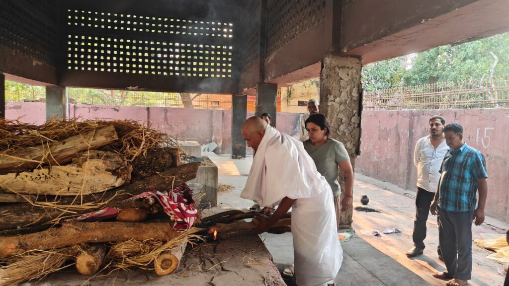 यह दृश्य केवल एक संस्कार नहीं था, बल्कि एक भावनात्मक क्षण था—जहां एक बेटी ने अपने पिता के प्रति अपने प्रेम, दायित्व और सम्मान को समाज के सामने जीवंत कर दिया। श्मशान घाट पर मौजूद लोगों की आंखें नम थीं, और हर कोई इस साहसिक कदम का साक्षी बन रहा था।