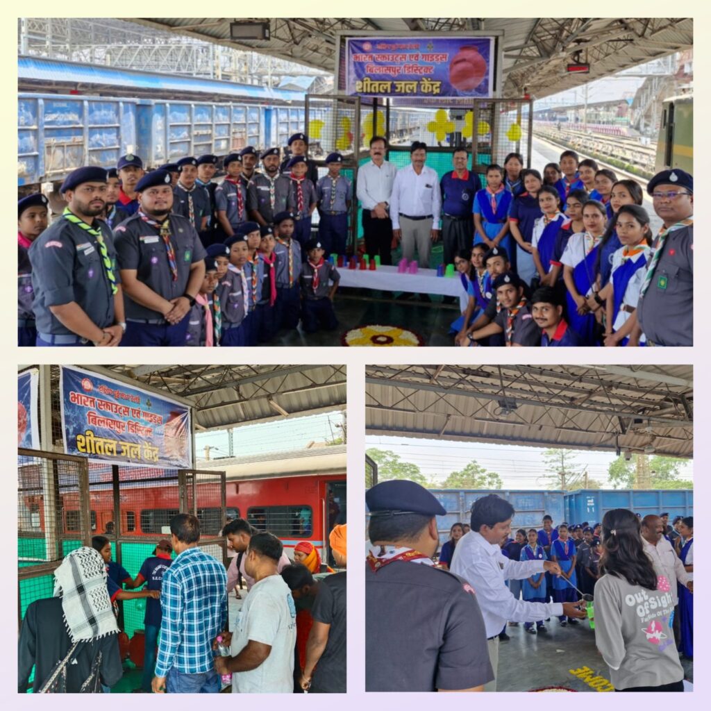 ग्रीष्म ऋतु की भीषण गर्मी में यात्रियों को राहत प्रदान करने एवं सेवा भावना को सुदृढ़ करने के उद्देश्य से दक्षिण पूर्व मध्य रेलवे, बिलासपुर मंडल के भारत स्काउट एंड गाइड द्वारा दिनांक 26 अप्रैल 2026 को बिलासपुर रेलवे स्टेशन पर जल वितरण सेवा का शुभारंभ किया गया। सीनियर डीसीएम एवं जिला आयुक्त स्काउट श्री अनुराग कुमार सिंह के मार्गदर्शन में यात्रियों को स्वच्छ एवं शीतल पेयजल वितरण की उपलब्ध कराई गई इस सेवा का औपचारिक शुभारंभ किया गया, जिसमें जिला आयुक्त रोवर श्री यू. एस. एस. राव की उपस्थिति रही। इस सेवा अभियान में स्काउट-गाइड, रोवर-रेंजर सदस्यों ने उत्साहपूर्वक भाग लेते हुए अनुशासन, समर्पण एवं सेवा भाव का उत्कृष्ट परिचय दिया। कार्यक्रम का संचालन राज्य संगठन आयुक्त (स्काउट) श्री दिलीप कुमार स्वाईं, जिला सचिव श्री संजय मेश्राम तथा सहायक जिला संगठन आयुक्त श्री जी. लोकेश राव के नेतृत्व में सफलतापूर्वक संपन्न हुआ। सीनियर डीसीएम श्री अनुराग कुमार सिंह ने बताया कि इस प्रकार के सेवा कार्य समाज में सहयोग एवं मानवीय मूल्यों को सुदृढ़ करते हैं। यह सेवा ग्रीष्म काल तक जारी रहेगी जिससे यात्रियों को शीतल पेयजल की सुविधा प्राप्त होती रहेगी।