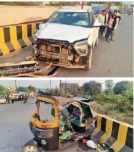 अनियंत्रित कार पहले सामने से आ रही एक अन्य कार से टकराई और फिर सवारी ऑटो में जा भिड़ी। टक्कर इतनी तेज थी कि ऑटो के परखच्चे उड़ गए। हादसे में ऑटो सवार मस्तूरी धनगंज निवासी 50 वर्षीय बीरस बाई डहरिया की मौके पर ही मौत हो गई। ऑटो चालक के दोनों पैर टूट गए, जबकि ऑटो में सवार अन्य तीन लोग गंभीर रूप से घायल हो गए।