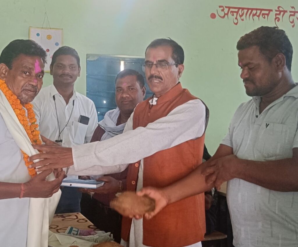अतिथियों ने शिक्षक ओम प्रकाश जायसवाल को शाल, श्रीफल,डायरी,पेन,गिफ्ट आदि देकर सम्मानित किया एवं विदाई दी गई।